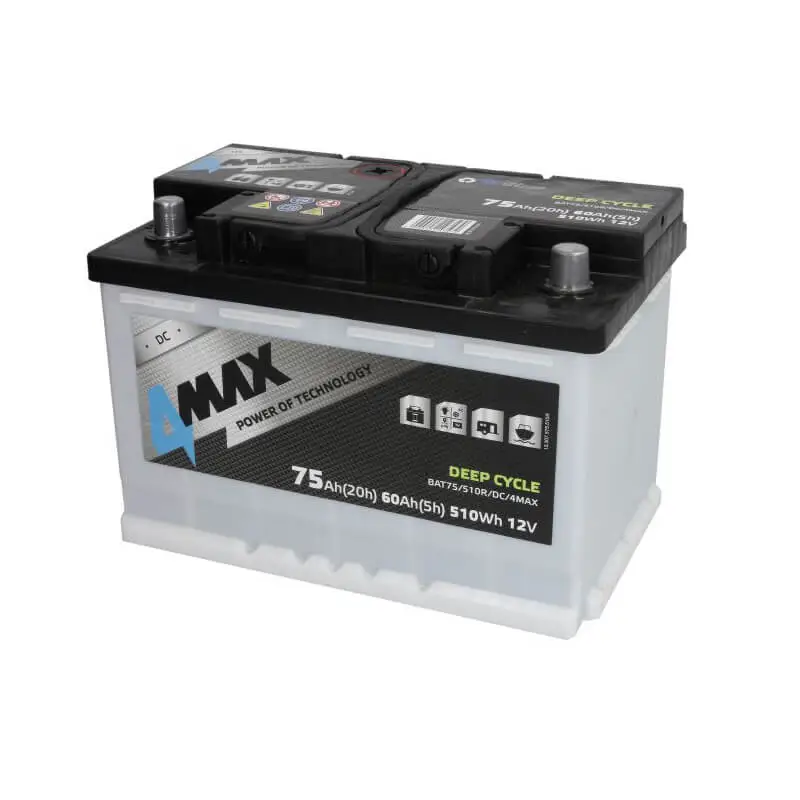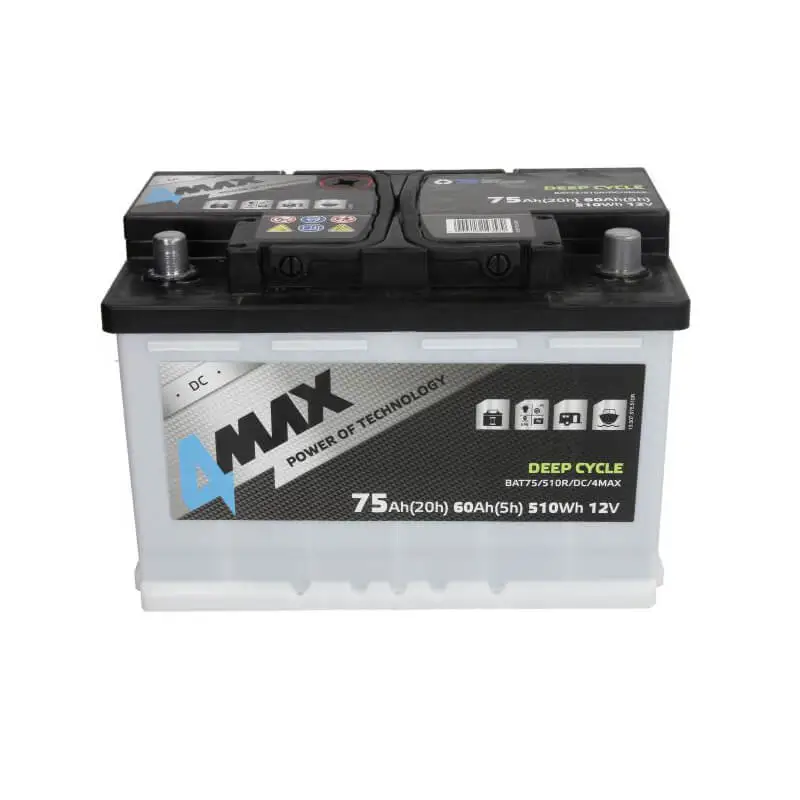 4MAX Battery 12V 75Ah DEEP-CYCLE (R+ standard terminal)4MAX Battery 12V 75Ah DEEP-CYCLE (R+ standard terminal)