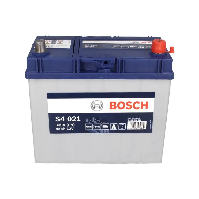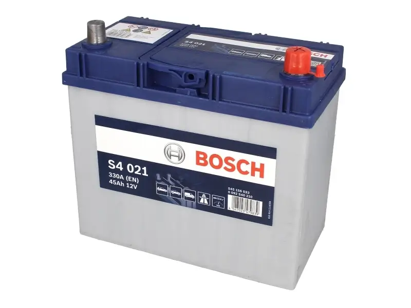 Battery BOSCH 12V 45Ah/330A S4 (R+ standard terminal) 238x129x227 B01 – fitting flange 10.5 mm (starting)