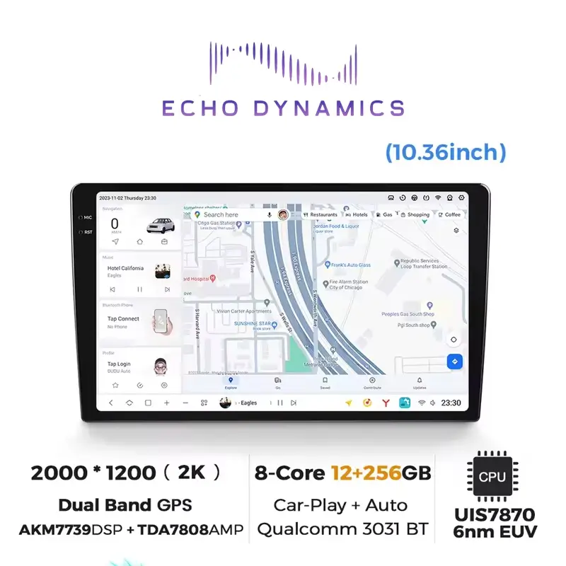 Car Audio, TabletEcho Dynamics D7 10.36 inch HD touch screen Android multimedia player Universal 12/256G