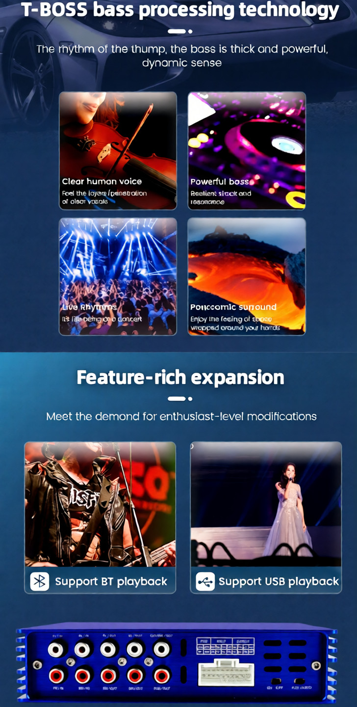 - 4-core 32bit DSP processor: DF sound processing technology/T-Boss bass processing technology