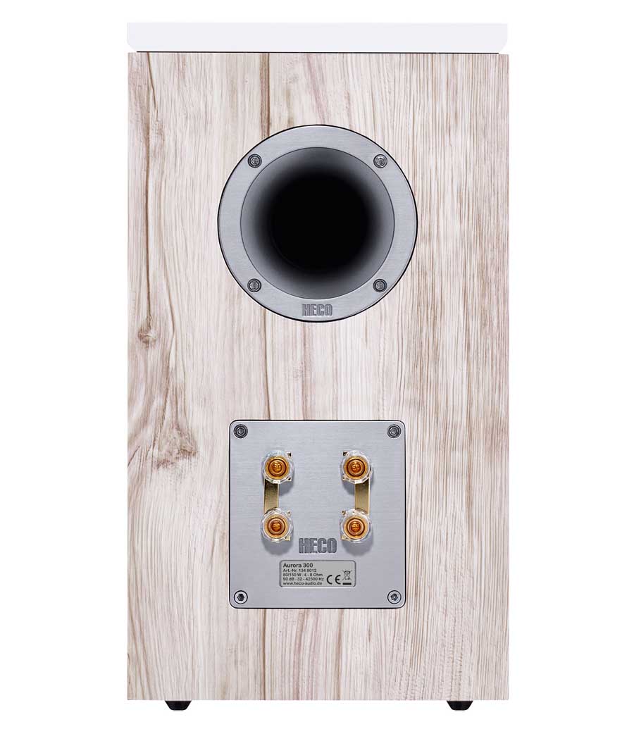 Το Aurora 300 είναι ένα συμπαγές ηχείο βιβλιοθήκης με ασυμβίβαστες ποιότητες ήχου. Το πανομοιότυπο woofer 170 mm, το οποίο βρίσκεται επίσης στο Aurora 700, χρησιμοποιείται στο κάπως μικρότερο, εξίσου ανθεκτικό περίβλημα και εγγυάται ισχυρή απόδοση στο εύρος μπάσων και χαρακτηριστική συχνότητα μεσαίου εύρους με το ελαφρύ χαρτί κραφτ με μακριές ίνες. κωνικό και μακρόστενο περιβάλλον. Το πρόσφατα αναπτυγμένο tweeter Fluktus με το θόλο από σύνθετο μετάξι 28 mm, την ψύξη με φερρορευστό, το ισχυρό σύστημα διπλού μαγνήτη φερρίτη και τη νέα ακουστική γεωμετρία της φλάντζας είναι επίσης διαθέσιμο για να εξασφαλίσει ένα άψογο εύρος ανώτερης συχνότητας. Η υψηλής ποιότητας επίστρωση λάκας από μετάξι στο μπροστινό μέρος και το επάνω μέρος του ηχείου, η οποία διατίθεται σε φινίρισμα “ebony black” ή “ivory white”, φαίνεται εξαίσια παρά τις συμπαγείς διαστάσεις και, σε συνδυασμό με τη μοντέρνα ξύλινη διακόσμηση, δημιουργεί ένα κομψή οπτική προφορά στο σύγχρονο περιβάλλον διαβίωσης.