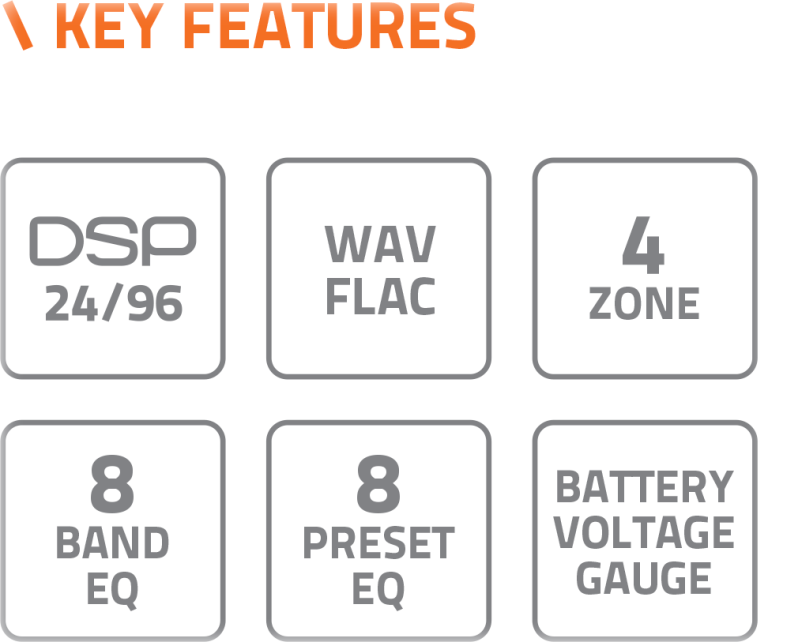 - Native DSP working at 24 bit/96 kHz and an extended audio band up to 40 kHz for hi-res audio performance.