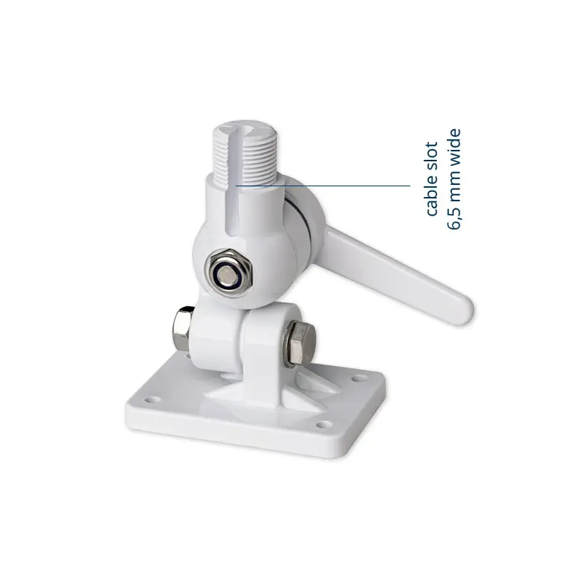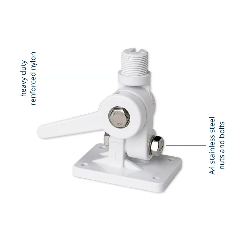 The PA-3 mount is designed for installing the antenna on horizontal, inclined and vertical surfaces, thanks to its 4-way adjustment that allows it to tilt the antenna in the correct way. Constructed in UV-resistant reinforced nylon, it allows the antenna to fold down with a simple release of the snap handle. Assembled with A4 stainless steel screws and bolts, it guarantees extraordinary durability and high resistance to rust and salt.