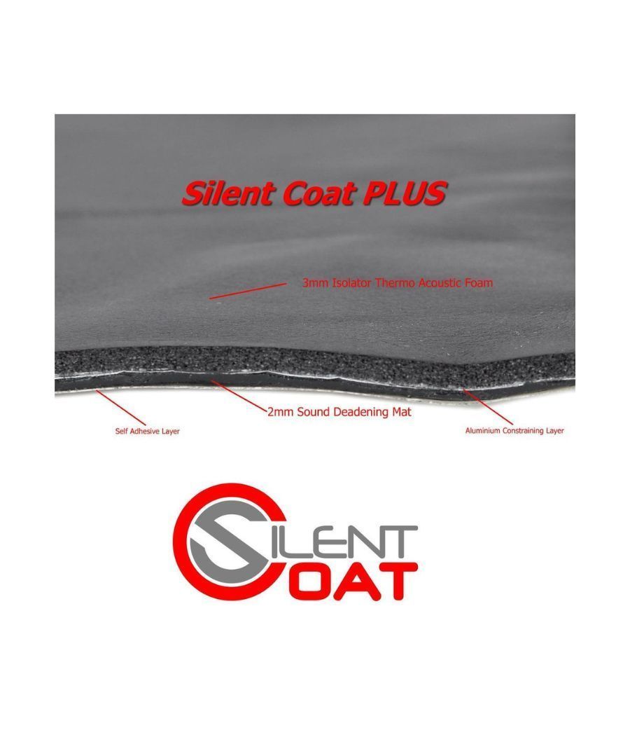 Το Silent Coat Plus έχει μοναδική κατασκευή 2 στρώσεων με συνδυασμό δόνησης και μόνωσης. Αυτό το προϊόν είναι τέλειο για έλεγχο θορύβου και θερμοκρασίας στο δάπεδο, το πορτμπαγκάζ και την οροφή του οχήματος. Ιδανικό για πάνελ οροφής, σήραγγες μετάδοσης και διαφράγματα για μείωση του θορύβου και σταθεροποίηση της θερμοκρασίας μέσα στο όχημα. Απλώς ξεφλουδίστε και κολλήστε πάνω στη λαμαρίνα με μία εύκολη εφαρμογή.