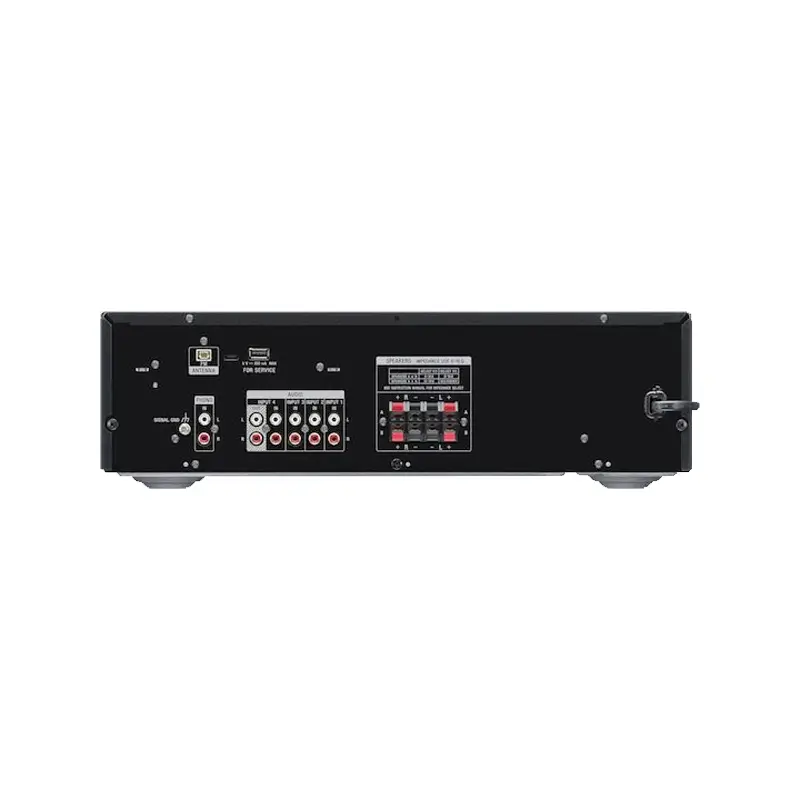The STR-DH190 from Sony belongs to the family of solid stereo integrated amplifiers. The integrated amplifier combines a preamplifier and a power amplifier in one device, so it can directly receive the signal from any source (cd/dvd player, turntable, radio, etc.) and transfer it to the speakers for playback. In this case, it operates with transistors or otherwise solid state.